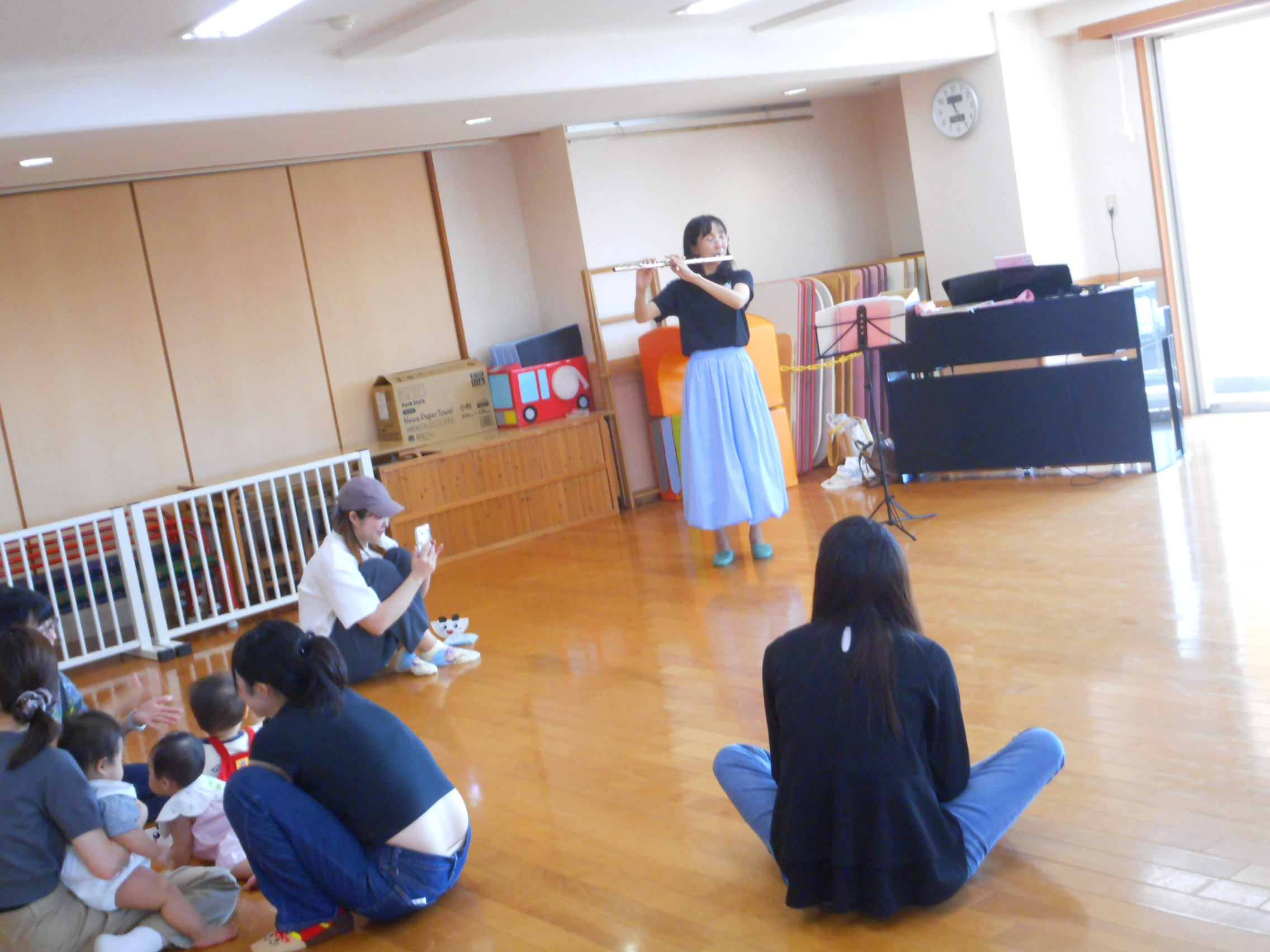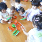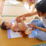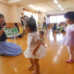 リトミック・ベビーマッサージを楽しみました 2025年10月9日 最終更新日時 : 2025年10月9日 admin 講師の方をお呼びしてのイベントがいっぱいの、10月★ リトミックでは、楽器に触れたり、リズムにのって楽しみました。 ベビーマッサージではお母さんとの触れ合いを楽しみながらゆったりとした時間を過ごしました。