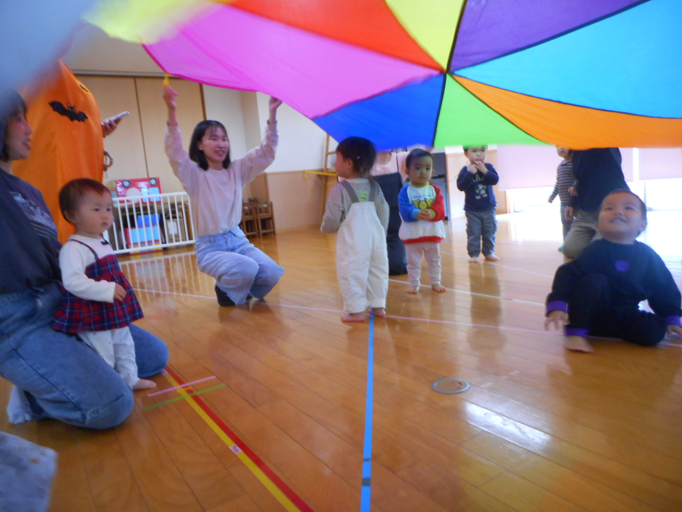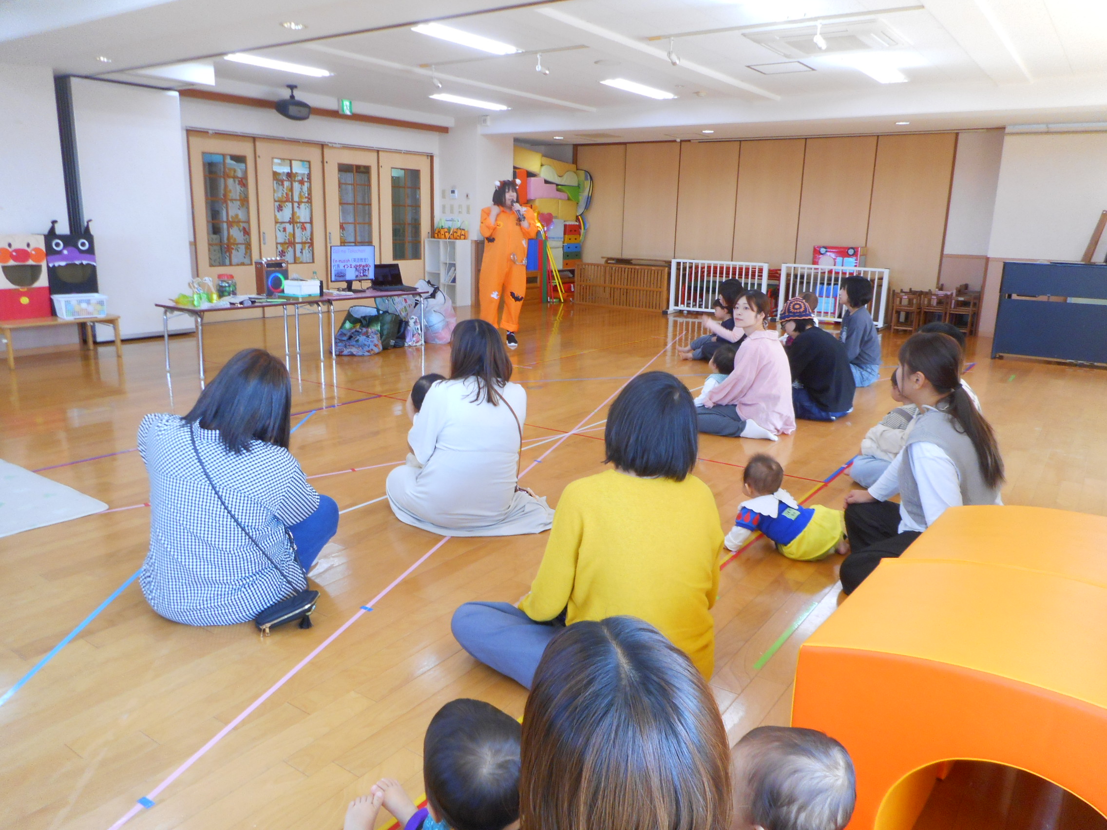 英語であそぼうを楽しみました(HALLOWEEN) 2025年10月30日 最終更新日時 : 2025年10月30日 admin 仮装をした講師の先生から、目が離せないお友だち☆彡英語を身近に感じながら、親子で沢山遊びました。